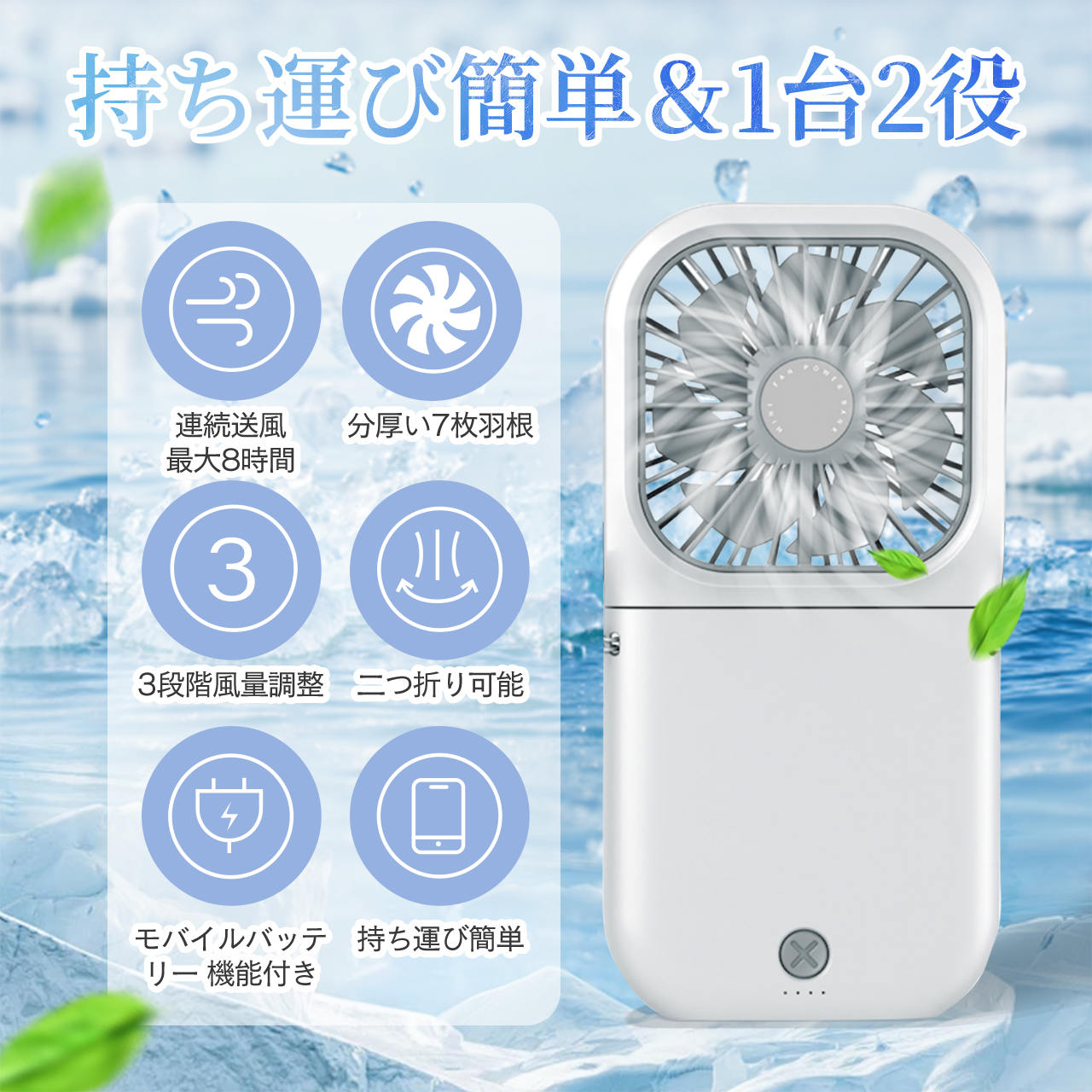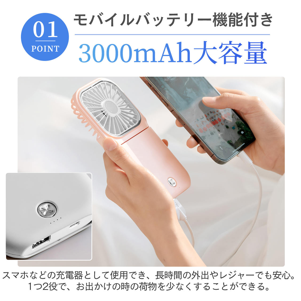 モバイルバッテリーの代わりにもなるハンディーファン。