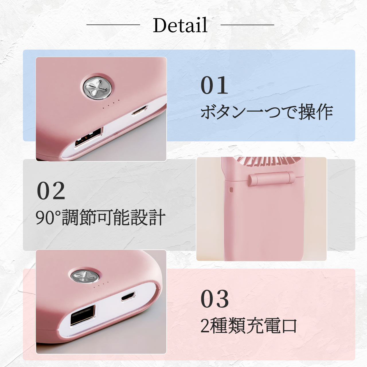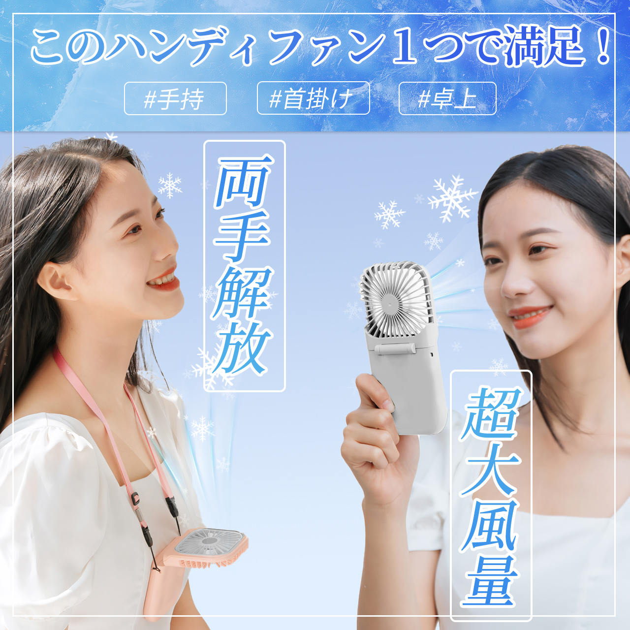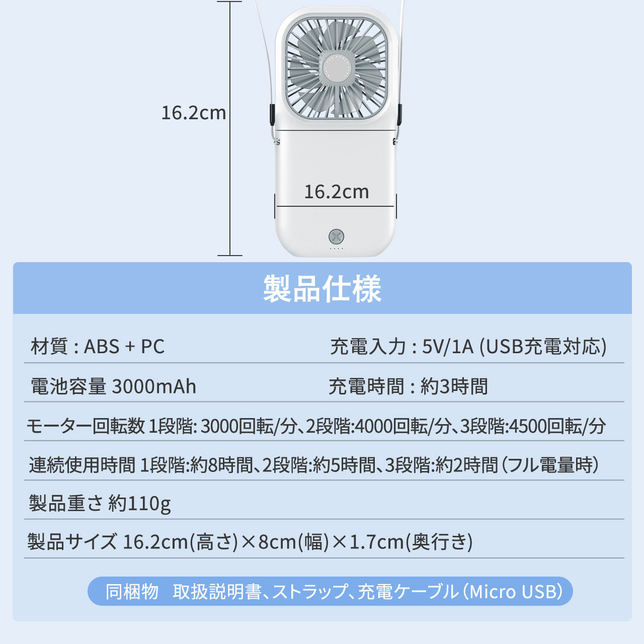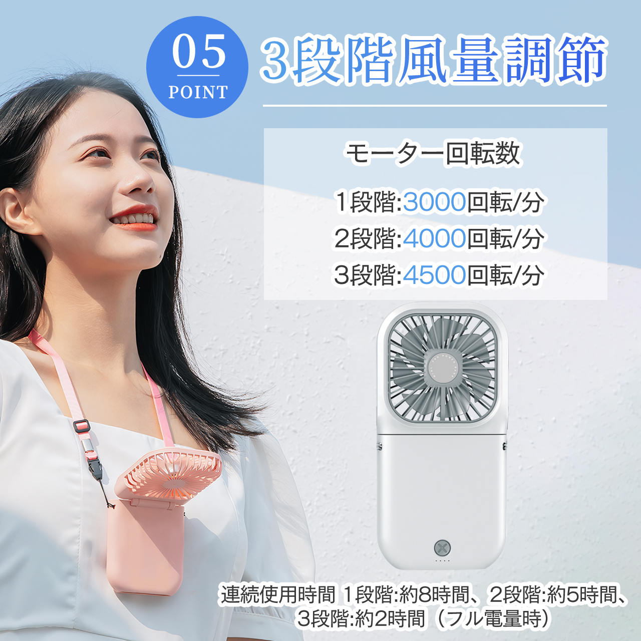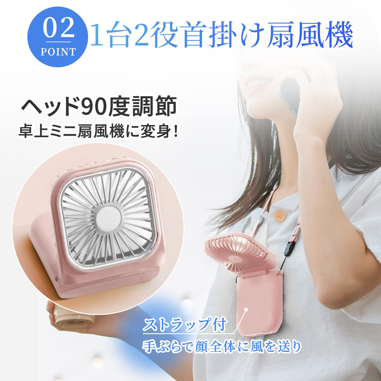 90度調整できるので首からかけて手ぶらで風を感じることができてとても良いです!