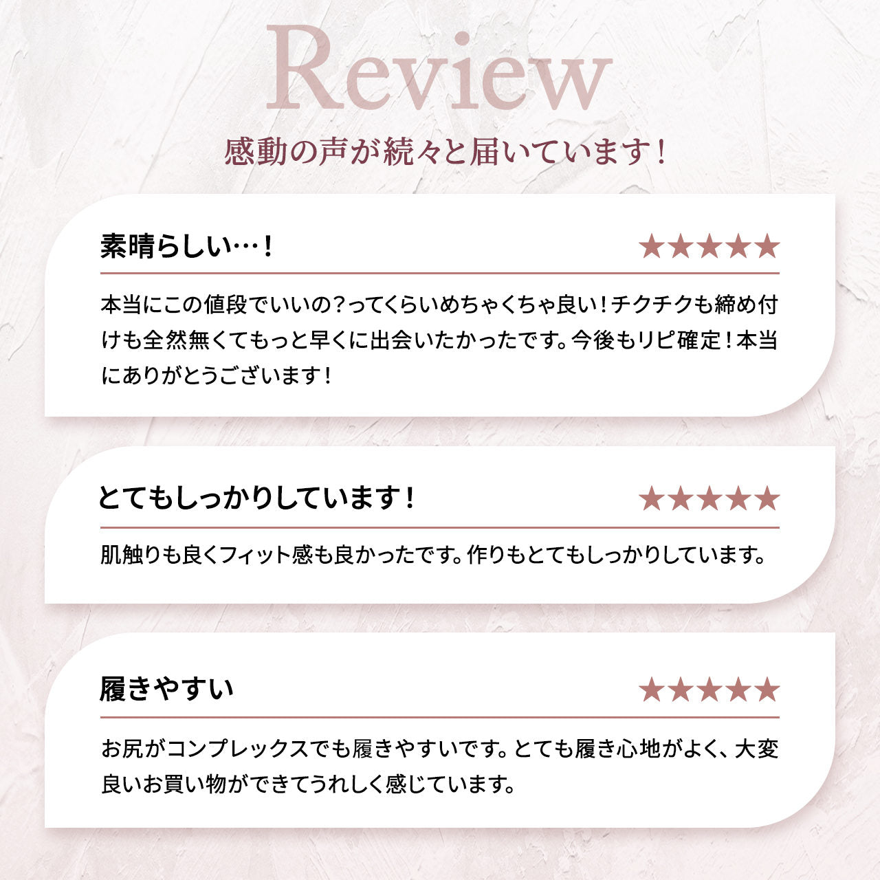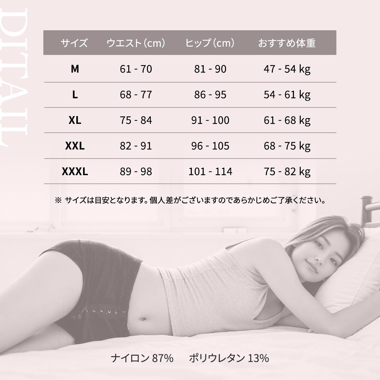 産後の下腹部ぽっこり体型なのでレビューを参考に普段より2サイズ上で購入しました。ほどよい締めつけで寝てる間だけでなく家にいる間ずっと着用できます。