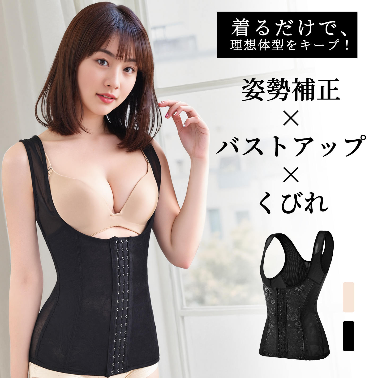 体型矯正 姿勢サポート タンクトップ|U字型設計×ワイドショルダー|ダブル加圧でくびれ創造|背面クロス構造で猫背防止×脇肉バストアップ【ディアドリス】